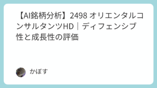 ディフェンシブコア銘柄 【AI銘柄分析】2498 オリエンタルコンサルタンツHD|ディフェンシブ性と成長性の評価 企業紹介オリエンタルコンサルタンツホールディングスは、日本を代表する建設コンサルタント企業です。主に道路、鉄道、空港、上下水道といった社会インフラの企画、調査、設計、施工管理、維持管理までを一貫して手掛けています。主要な顧客は国や地方自治体... 2025.10.01 AI評価★★★★★【守】ディフェンシブコア銘柄管理人注目度★★★★☆