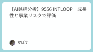 AI評価★★★★★【攻】 【AI銘柄分析】9556 INTLOOP|成長性と事業リスクで評価 企業紹介INTLOOP(9556)は、フリーランスのコンサルタントやエンジニア、そして自社社員を組み合わせたチームで、企業の経営課題解決やデジタルトランスフォーメーション(DX)を支援するプロフェッショナル人材ソリューション事業を展開してい... 2025.10.01 AI評価★★★★★【攻】キャピタルゲイン狙い銘柄管理人注目度★★★★☆