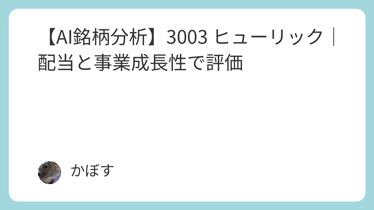 本レポートは、AIによる銘柄分析結果を基に、3003ヒューリックの投資判断をまとめたものです。企業の収益性、成長性、財務健全性、割安性、事業リスクなどを多角的に評価しています。