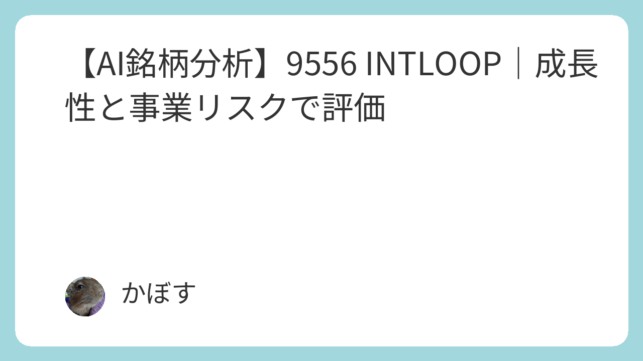この記事では、INTLOOP(9556)の企業分析をAIが実行し、その結果を詳細なレポートとしてまとめています。キャピタルゲイン狙いの投資を検討されている方に、本レポートが意思決定の一助となれば幸いです。