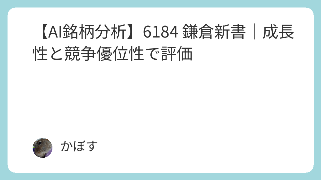本レポートでは、鎌倉新書(6184)の事業内容、財務状況、成長性、そして競争優位性について、多角的な視点からAIが分析した結果をまとめています。投資判断の一助としてご活用ください。