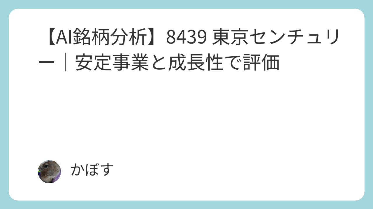 本レポートでは、東京センチュリー(8439)の投資魅力度を多角的に分析します。企業の財務状況、事業の成長性、競争優位性などをAIが詳細に評価し、その結果を解説します。