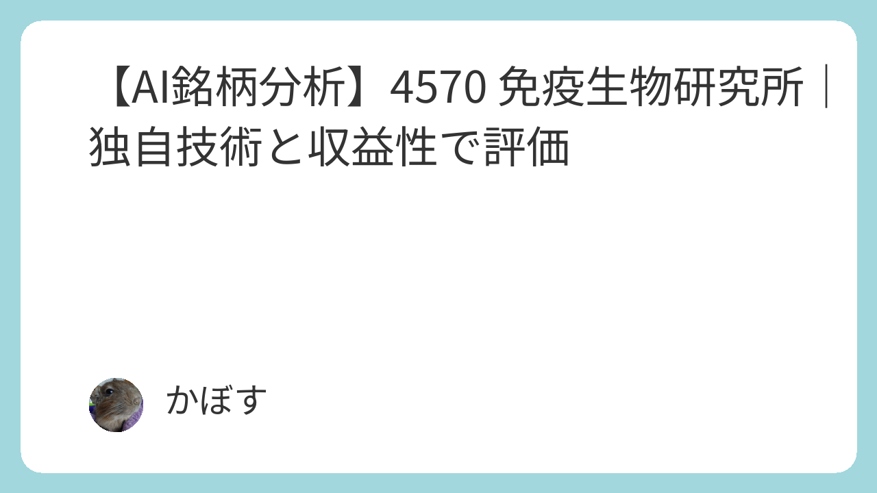 本レポートは、AIが株式会社免疫生物研究所(4570)の企業分析を行った結果をまとめたものです。企業の概況から財務状況、将来性、リスク要因までを多角的に評価しています。