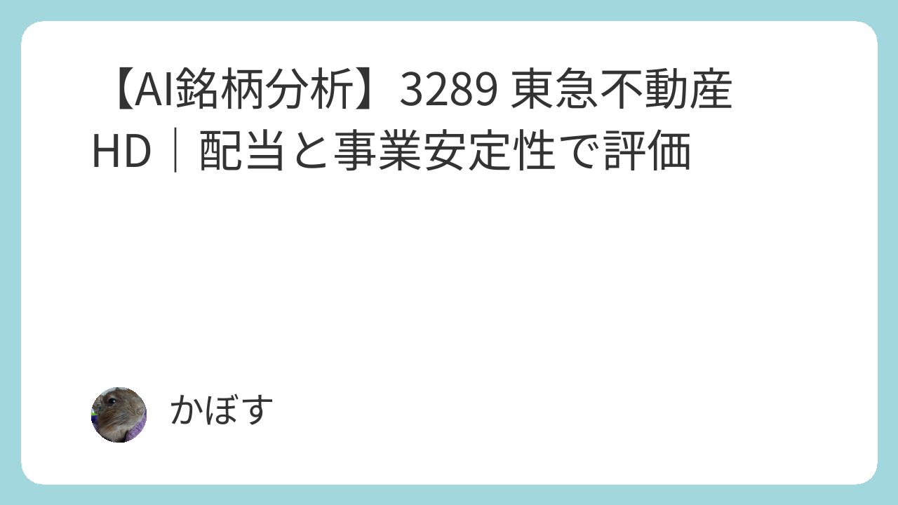 この記事では、AIが東急不動産ホールディングス(3289)の事業内容、財務状況、成長性、株価水準などを分析した結果を解説します。本レポートが、皆様の投資判断の一助となれば幸いです。