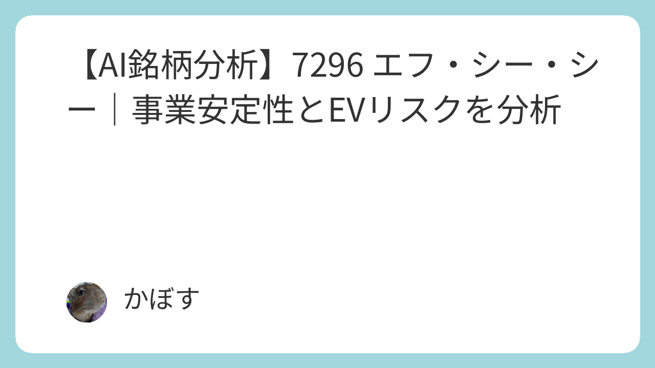 この記事では、AIが株式会社エフ・シー・シー(7296)の事業内容、財務状況、株価水準などを多角的に分析した結果をレポート形式でお伝えします。