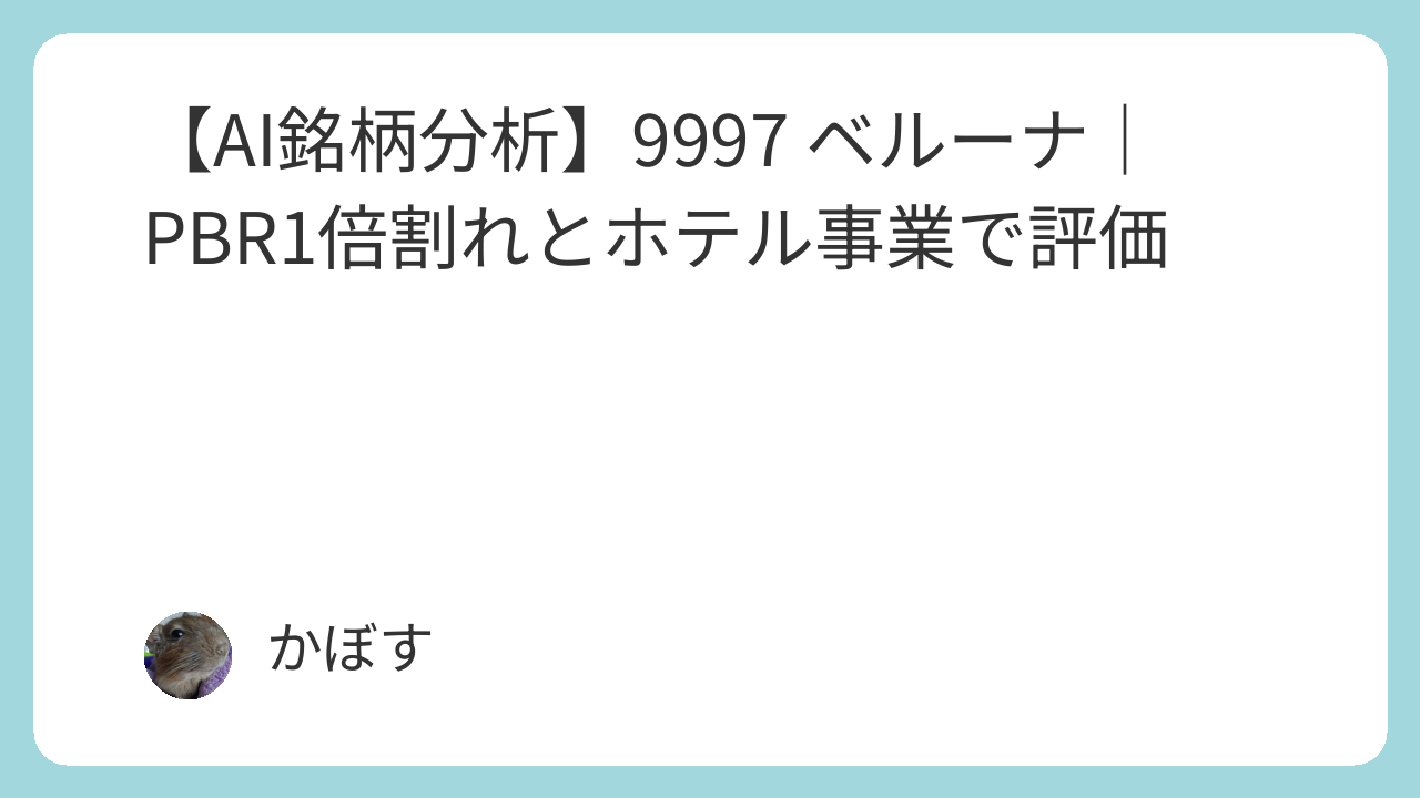 この記事では、AIによる分析に基づき、ベルーナ(9997)の財務状況、成長性、競争優位性、および株価水準を詳細に評価しています。本レポートは、ディフェンシブコア銘柄としての安定性と、今後のキャピタルゲイン狙いのポテンシャルを兼ね備えているかという観点から総合的に判断することを目的としています。