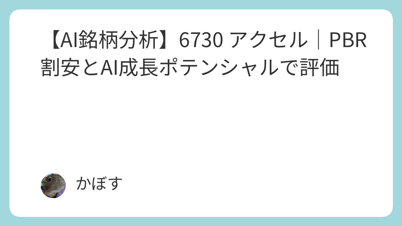 本レポートでは、アクセル(6730)の株価水準、財務状況、そして新規事業であるAI領域の成長ポテンシャルを分析し、ディフェンシブコアとしての安定性とキャピタルゲイン狙いとしての成長期待を評価します。