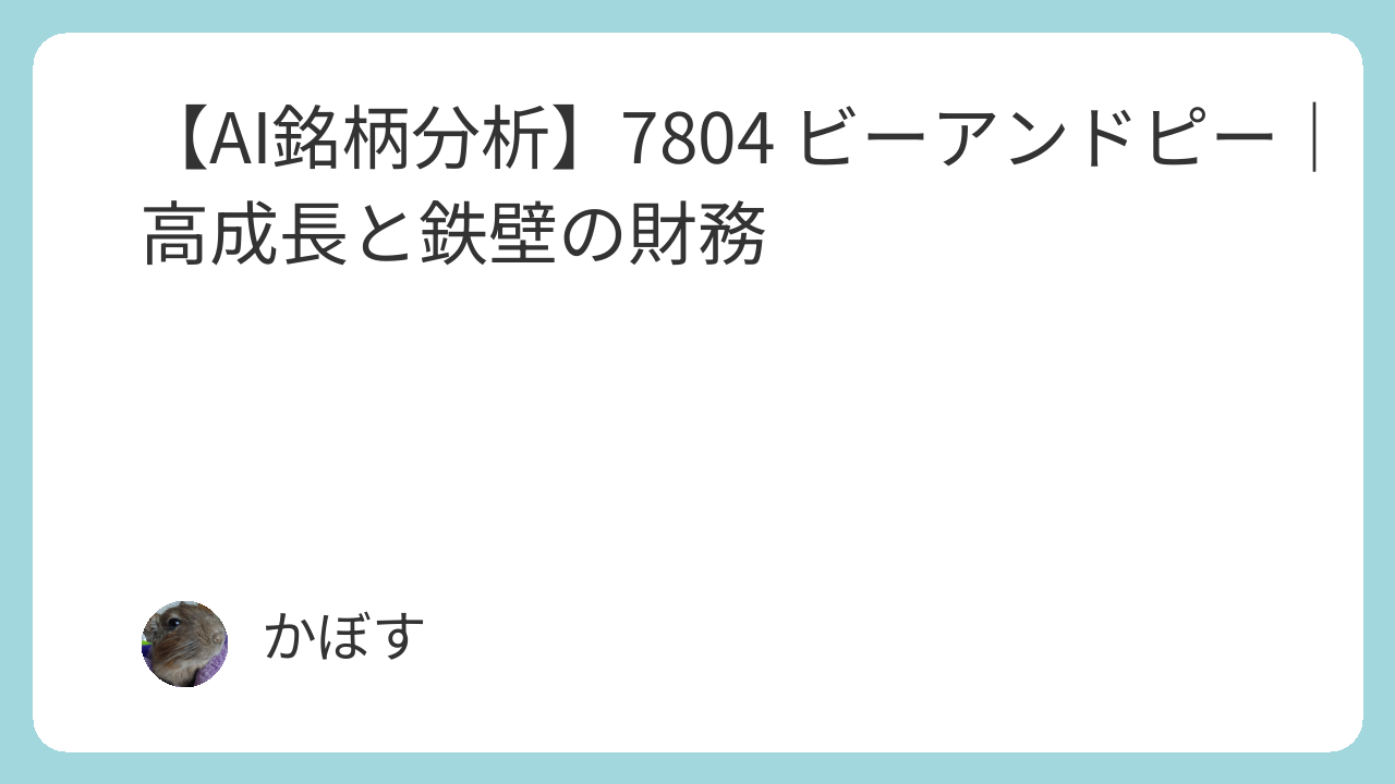 この記事では、AIによる分析に基づき、7804 ビーアンドピーの収益性、成長性、財務健全性、株価水準、および競争優位性を徹底的に評価します。特に、高い成長性と鉄壁の財務基盤を両立している点に焦点を当て、その投資価値を客観的に解説します。