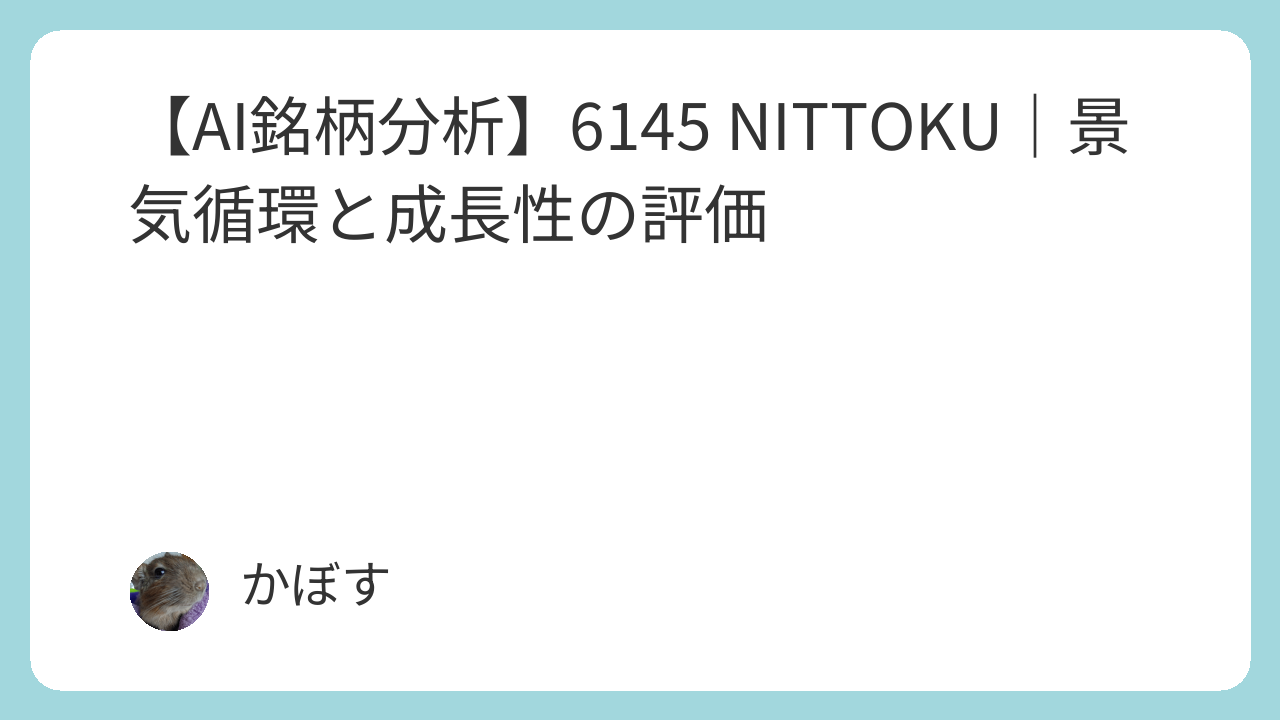 この記事では、コイル巻線機の世界大手であるNITTOKU(6145)について、収益性、成長性、財務健全性、株価水準の4つの観点からAIによる詳細な分析結果を解説します。
