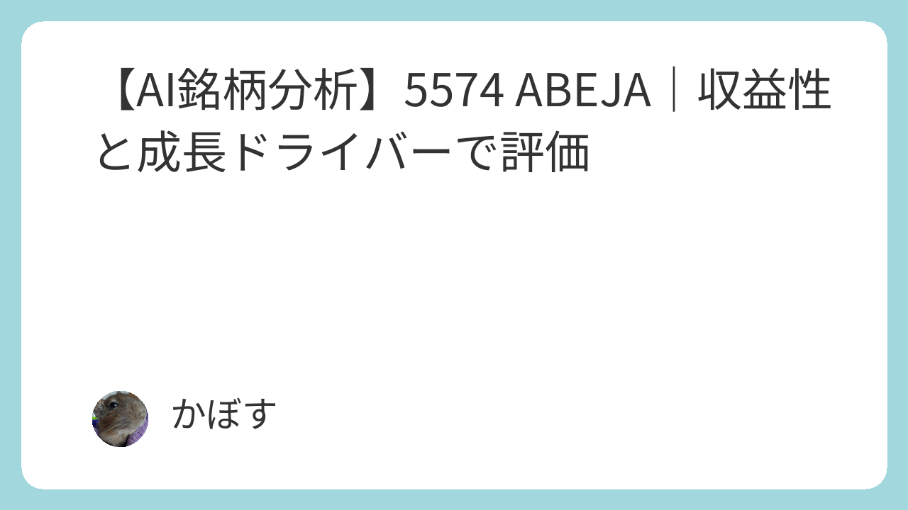 本記事では、ABEJA(5574)の事業内容、業績、財務状況、株価水準について、AIによる分析レポートをまとめました。収益性、成長性、財務健全性、割安性、事業リスクなどの観点から、同社の特徴を評価しています。