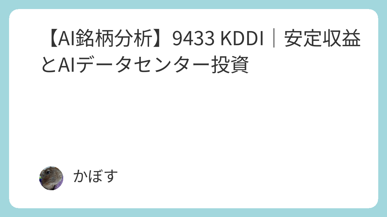 本レポートでは、9433 KDDIについて、AIによる分析結果を客観的に整理し、投資判断の参考情報として提供します。収益性、成長性、財務健全性、株価水準、リスク要因など、多角的な観点から評価を行います。