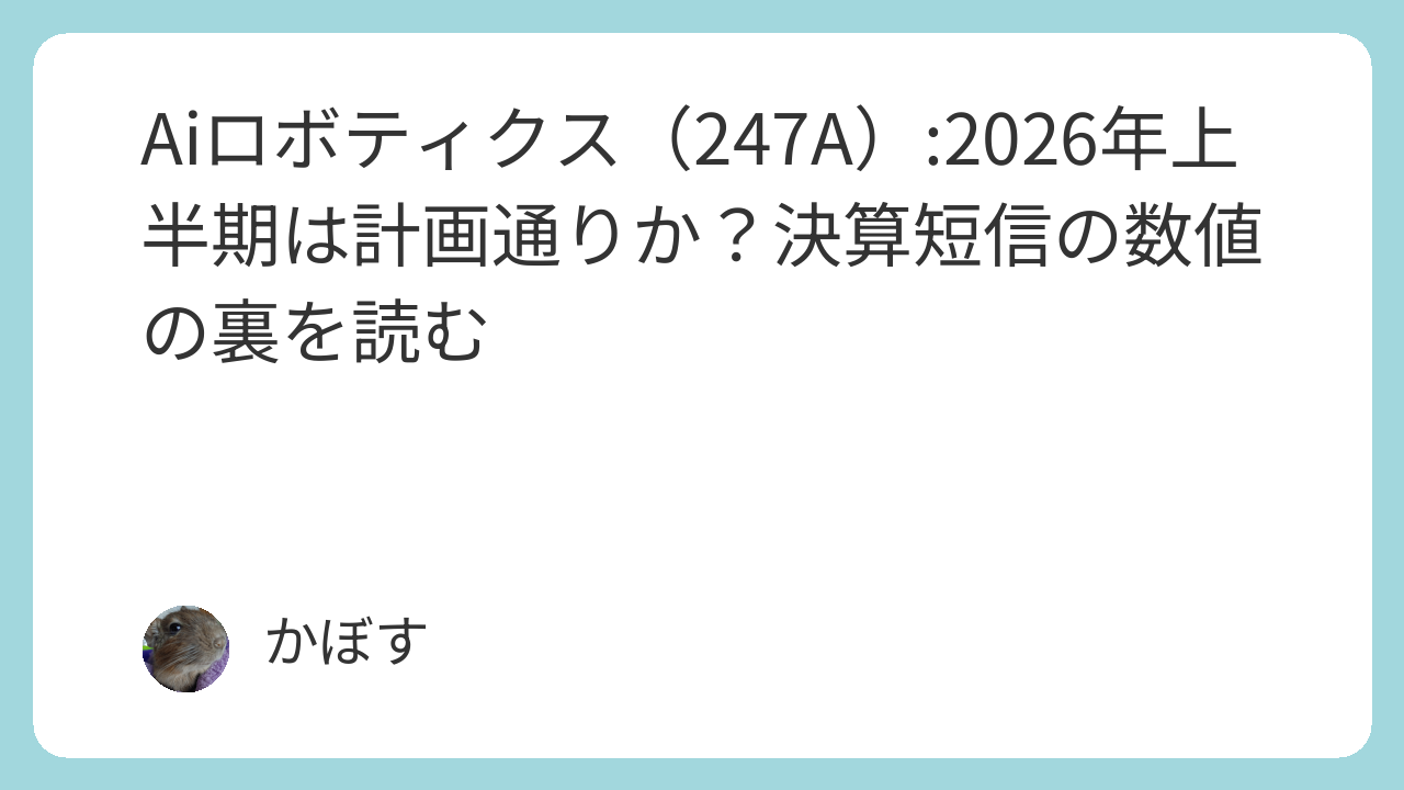 一方で、今期中間決算で示された財務構造の急激な変化は、同社モデルが**「高成長の維持」と「財務の安定性」の両立**という、グロース企業にとって最も困難な課題に直面していることを示唆します。財務負担が増えることで、成長を続けるための前提条件が厳しくなる可能性があります。
