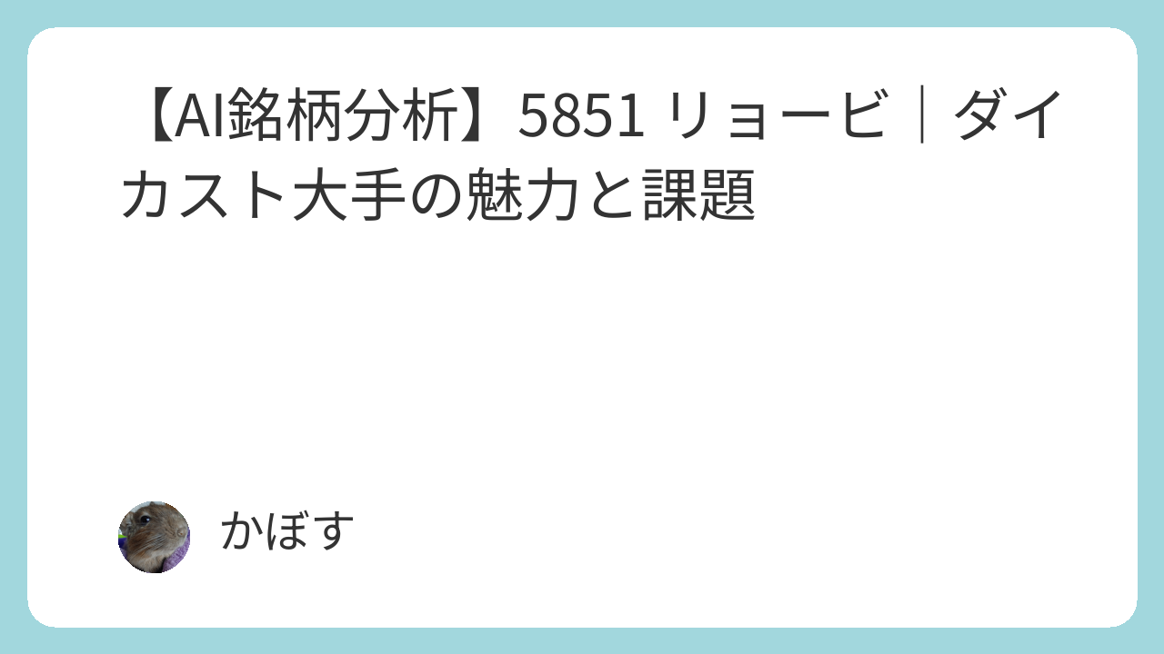 この記事では、リョービ(5851)について、AIによる多角的な分析結果をレポートします。