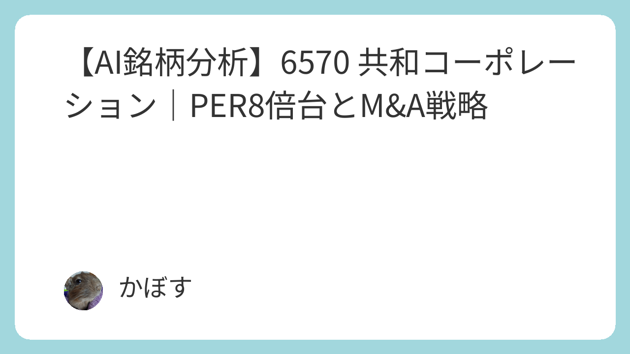 本記事では、地方ドミナント戦略とM&Aにより着実な成長を続ける「共和コーポレーション(6570)」を分析します。市場からの評価指標(PER)が同業他社と比較して割安な水準に留まっている点に着目し、その成長性と投資妙味についてAIが多角的に評価しました。