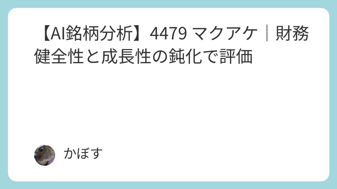本レポートでは、直近の決算で黒字転換を果たしたマクアケ(4479)について、その収益性の改善と今後の成長持続性を中心に分析します。財務状況は盤石ですが、将来の成長見通しについては慎重な評価が必要です。