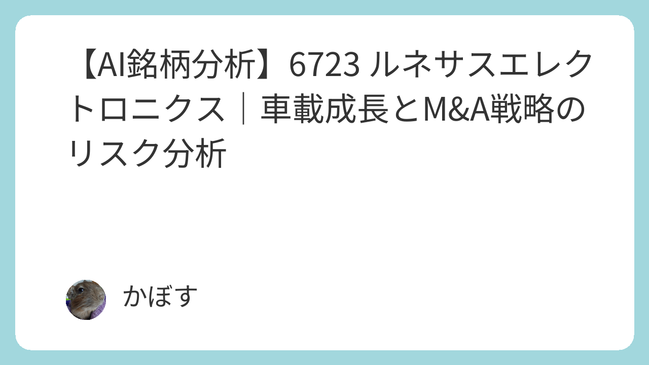 この記事では、半導体大手のルネサスエレクトロニクス(6723)について、AIによる分析結果を基に、その事業内容、収益性、成長性、潜在的なリスクなどを客観的に評価・整理します。