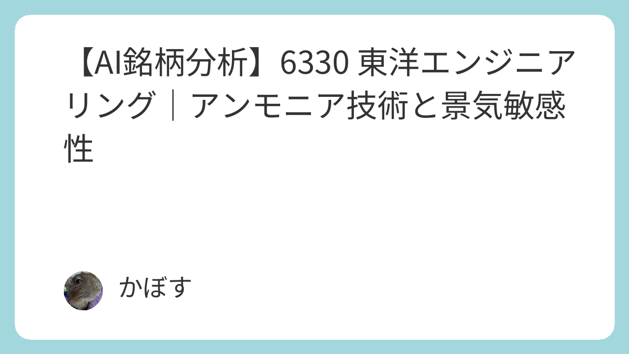 本レポートは、東洋エンジニアリング(6330)について、収益性、成長性、財務健全性、株価水準の4つの観点からAIによる分析を行った結果をまとめたものです。同社の高い技術的優位性と、景気敏感な事業構造、そして現在の株価水準の妥当性を客観的に評価します。