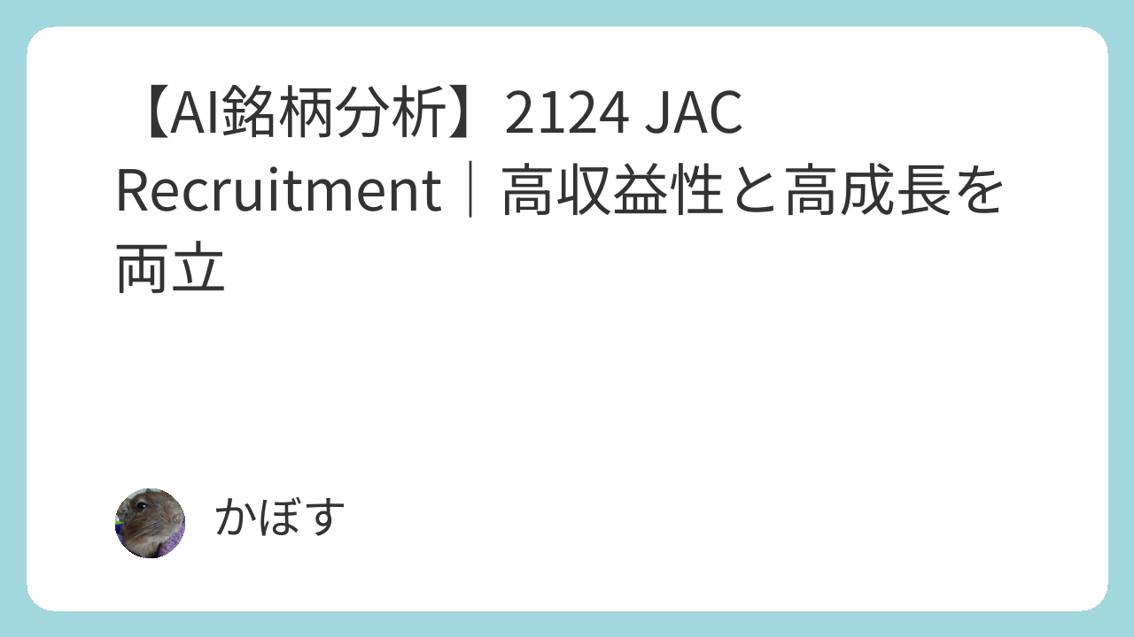 このレポートは、JAC Recruitmentの財務、成長性、競争優位性、リスク要因などをAIが多角的に分析し、その結果を客観的にまとめたものです。投資判断の参考情報としてご活用ください。