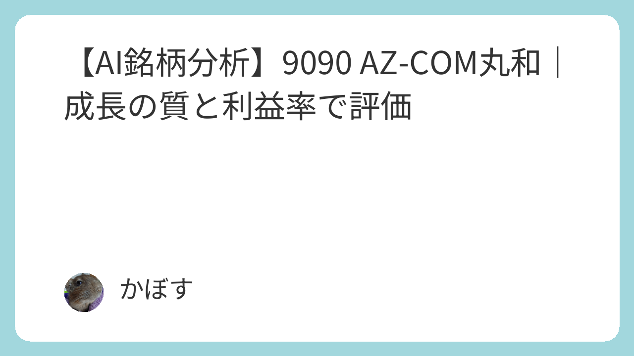 本レポートは、AZ-COM丸和ホールディングスの財務、成長性、競争優位性、および直近の株価水準を客観的に評価したものです。特に、物流業界全体が直面する「2024年問題」が同社の成長ストーリーに与える影響について、厳格な診断を行いました。