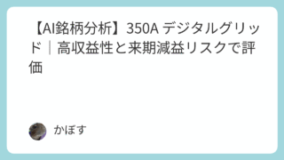 キャピタルゲイン狙い銘柄 【AI銘柄分析】350A デジタルグリッド|高収益性と来期減益リスクで評価 企業紹介**デジタルグリッド(350A)は、東京大学発のエネルギー系テック企業です。主要な事業は、発電家と法人需要家を直接結ぶ電力取引プラットフォーム「DGP(デジタルグリッドプラットフォーム)」**の運営です。このプラットフォームは、電力... 2025.10.09 AI評価★★★☆☆【攻】キャピタルゲイン狙い銘柄管理人注目度★★☆☆☆