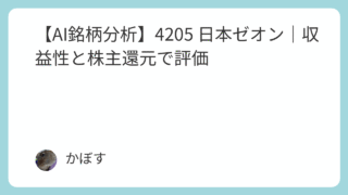 【AI銘柄分析】4205 日本ゼオン|収益性と株主還元で評価