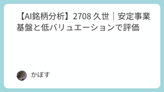 キャピタルゲイン狙い銘柄 【AI銘柄分析】2708 久世|安定事業基盤と低バリュエーションで評価