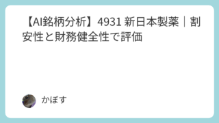 キャピタルゲイン狙い銘柄 【AI銘柄分析】4931 新日本製薬|割安性と財務健全性で評価 企業紹介「パーフェクトワン」ブランドを主軸とし、化粧品・健康食品・医薬品の企画・販売を手掛けるファブレス企業です。国内オールインワン化粧品市場でトップシェアを誇り、DTC(Direct to Consumer)モデルと膨大な顧客データベース... 2025.12.27 AI評価★★★★☆【攻】キャピタルゲイン狙い銘柄管理人注目度★★★☆☆