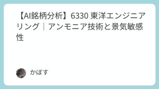 【AI銘柄分析】6330 東洋エンジニアリング|アンモニア技術と景気敏感性