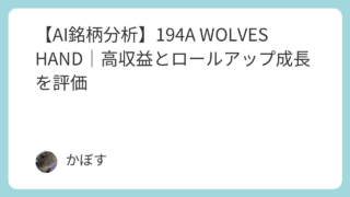 キャピタルゲイン狙い銘柄 【AI銘柄分析】194A WOLVES HAND|高収益とロールアップ成長を評価 企業紹介株式会社WOLVES HAND(194A)は、「動物医療のプラットフォーマー」を目指し、動物病院の運営を主軸とする企業です。ペットの家族化を背景とした高度医療ニーズの高まりと、後継者不足に悩む個人病院の事業承継ニーズ(M&A)を主要... 2025.12.18 AI評価★★★★☆【攻】キャピタルゲイン狙い銘柄管理人注目度★★★★☆