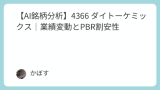 キャピタルゲイン狙い銘柄 【AI銘柄分析】4366 ダイトーケミックス|業績変動とPBR割安性 企業紹介ダイトーケミックスは、半導体や液晶用感光性材料、医薬中間体などの化成品を製造・販売している企業です。特に受託製造を主力としており、独自の技術とノウハウを強みとしています。また、産業廃棄物の処理や化学品のリサイクルを行う環境関連事業も... 2025.10.04 AI評価★☆☆☆☆【守】AI評価★☆☆☆☆【攻】キャピタルゲイン狙い銘柄ディフェンシブコア銘柄管理人注目度★★★☆☆