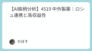 【AI銘柄分析】4519 中外製薬|ロシュ連携と高収益性