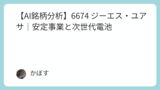 ディフェンシブコア銘柄 【AI銘柄分析】6674 ジーエス・ユアサ|安定事業と次世代電池 企業紹介ジーエス・ユアサ コーポレーション(6674)は、自動車用鉛蓄電池で国内トップクラスのシェアを誇る大手電池メーカーです。自動車向け以外にも、産業用電源システム、航空機や人工衛星といった特殊用途の電池、そして電気自動車(EV)用リチウ... 2025.10.06 AI評価★★★☆☆【守】ディフェンシブコア銘柄管理人注目度★★★★☆