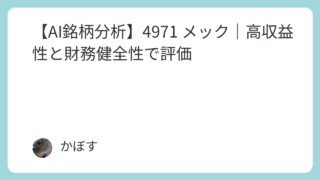 キャピタルゲイン狙い銘柄 【AI銘柄分析】4971 メック|高収益性と財務健全性で評価 企業紹介株式会社メック(証券コード:4971)は、電子基板・電子部品製造用薬品の開発・製造・販売を主軸とする化学薬品メーカーです。特に、半導体パッケージ基板の製造に不可欠な銅表面処理剤(密着向上剤「CZシリーズ」など)において世界トップシェ... 2025.11.25 AI評価★★★★☆【攻】キャピタルゲイン狙い銘柄管理人注目度★★★★☆