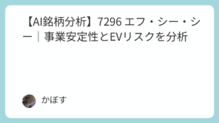 ディフェンシブコア銘柄 【AI銘柄分析】7296 エフ・シー・シー|事業安定性とEVリスクを分析 企業紹介株式会社エフ・シー・シー(7296)は、輸送用機器セクターに属する自動車部品メーカーです。特に二輪車用クラッチにおいては世界トップシェアを誇っており、安定した事業基盤を築いています。二輪事業のほか、四輪事業や非モビリティ事業も展開し... 2025.10.07 AI評価★★★☆☆【守】ディフェンシブコア銘柄管理人注目度★★★☆☆