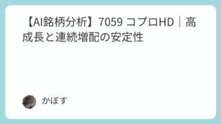 キャピタルゲイン狙い銘柄 【AI銘柄分析】7059 コプロHD|高成長と連続増配の安定性 企業紹介東証プライムに上場しているコプロ・ホールディングス(7059)は、持株会社としてグループ全体を統括しています。主軸事業は建設技術者派遣であり、グループ売上高の約9割を占める基盤事業です。日本の建設業界が抱える構造的な人手不足という課... 2025.11.23 AI評価★★★★★【攻】キャピタルゲイン狙い銘柄管理人注目度★★★★☆